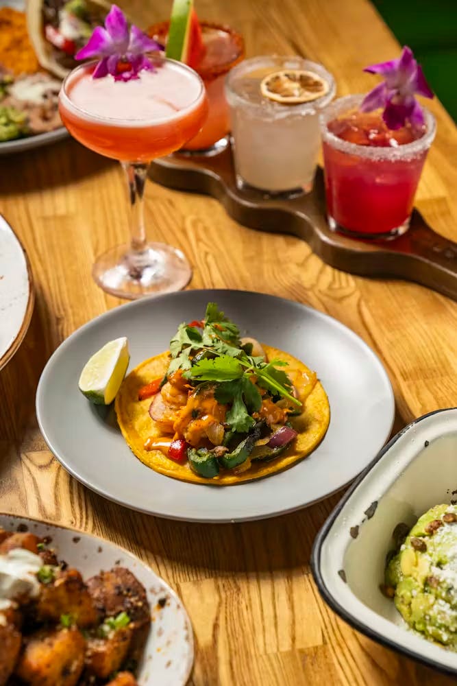 choice of asada steak or chicken tinga, cheese blend, pico de gallo, rice, beans, arugula, palenque salsa